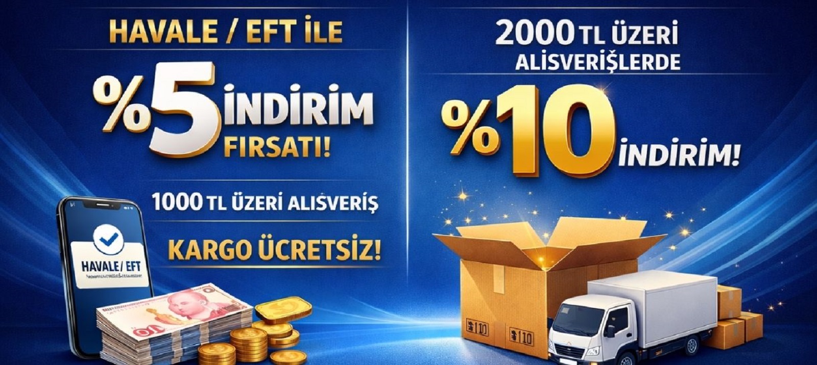 2000 TL üzeri %10 İndirim + Ücretsiz Kargo